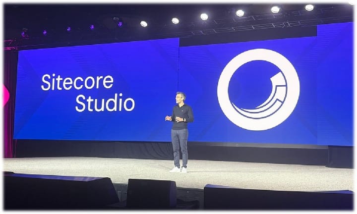 Sitecore COO Dave Tilbury announces Sitecore Studio. Sitecore Studio is also an Agentic AI platform consisting of Signals, Spaces, Flows, and Agents as building blocks
