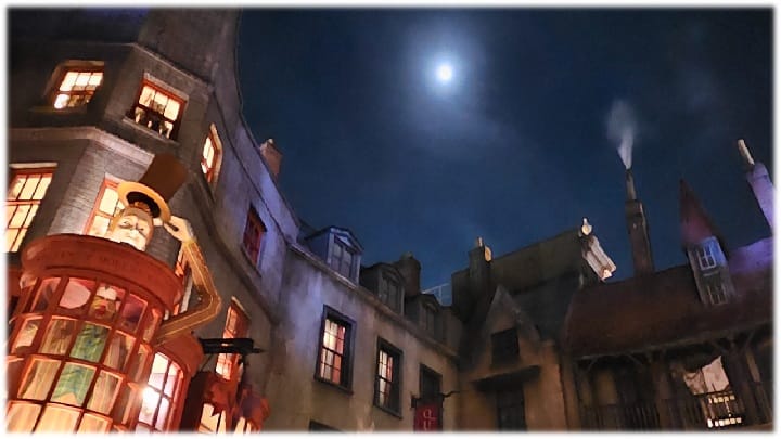 We had a private Symposium party at Universal Studios. It was a full moon night, and I captured this at The Wizarding World of Harry Potter.